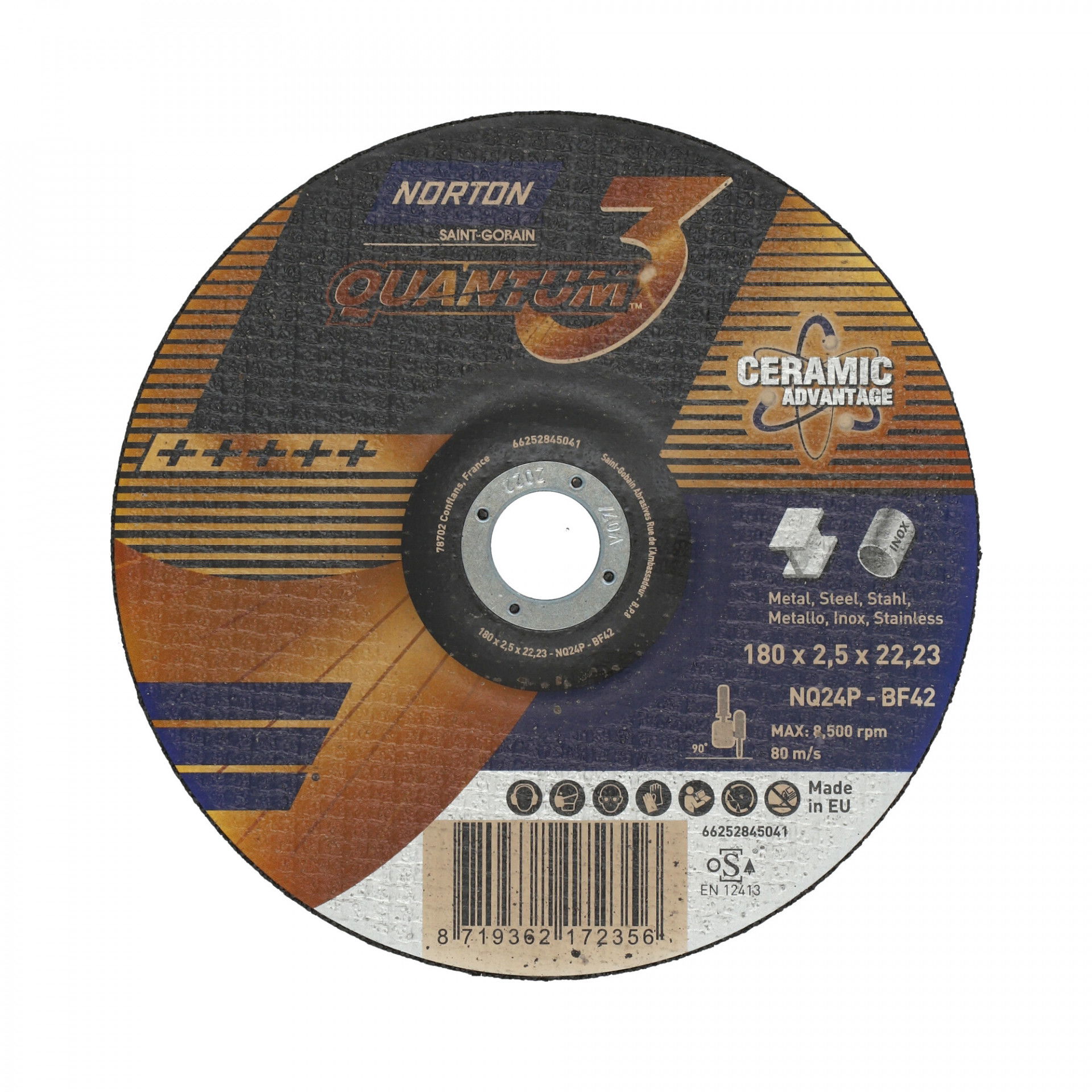 A Norton Quantum fém-inox vágókorong jellemzői a rendkívül gyors vágás, magas élettartam és kitűnő vágóképesség. Innovatív, kerámia vágókorongok. A legújabb fejlesztés, a legnagyobb sebesség és a legnagyobb kopásállóság a leghidegebb vágáshoz. Az innovatív Norton Quantum3 termékcsalád ultravékony kerámia vágókorongjai új szintre emelik a vágási teljesítményt a kényelem, az élettartam és a sebesség terén rendkívüli precizitással, gyorsasággal és pontossággal. A kerámia szemcsék adják ennek a korongnak egyedi karakterét, kategóriájában a legjobb teljesítményt nyújtva acélon és rozsdamentes acélon. Vágjon kevesebb rezgéssel, mivel a szuperéles kerámiaszemcsék alacsony nyomáson is folyamatosan dolgoznak, így a kezelő hosszabb ideig kényelmesebben vághat.